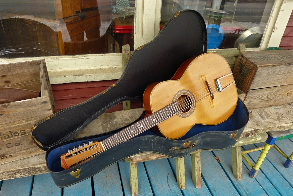 Bajo quintos and sextos evolved with Mexican border music and Tejano music especially. They often play a baritone lead/counterpoint role in modern music but "back in the day" they provided the warm bass part and the punchy guitar part (at the same time) for backing accordions and fiddles. The earlier ones lacked cutaways for extra fret access (like this one) and (like this one) had deep, huge bodies. While the lower bout on this is "just" 16" across, the depth is 4 1/4" (with a slight taper to the upper bout) and the body length is 22"!