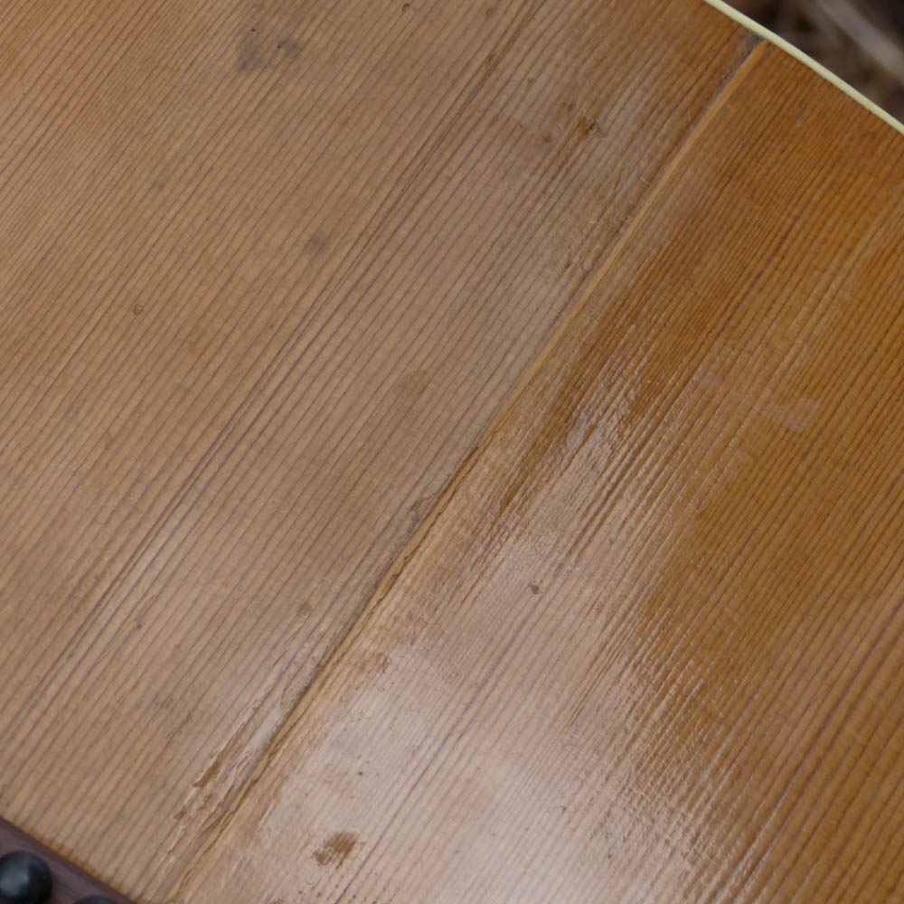 Overall the top is in good shape. It shows the deflection I'm used to seeing on these old 12-frets (and also apparent on this L-0) where the top before the bridge gets a little concave while the area above the soundhole pushes a little "up." It's no worry and is completely stable -- it's just the natural effect of tension and time on a very light build. Update, here: this has been going strong and without change since I posted in February.