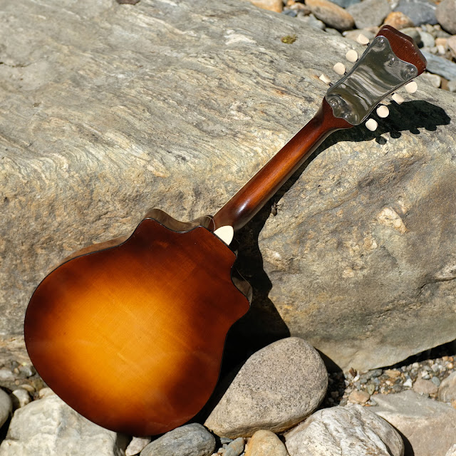 That case must have been Supertone's cheapest option beyond end-opening canvass! Mind you, the mandolin was for its time quite expensive, so the original buyer had probably spent all his dough on the mandolin- with just a tiny bit left for the case! I suppose that flat strap- and the interior colour do show it is old- it just looked like a cheapo 60s example with a quick glance. In fact, when I first saw this mandolin on ebay, I wondered if it had not been a reissue or copy as it just looked so pristine- but there are a few signs of wear and tear but even so, it's a real beauty and quite a catch. I'm jealous!