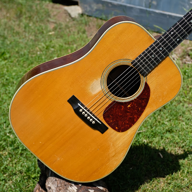 A Nashville old-time-scene transplant has made Rochester his new home and this is the fantastic D-28 he brought along with him. He told me he'd courted this guitar for several months before sealing the deal and I'm glad he did because I got to give it a go because of that. She's a beaut -- that's for sure -- and in fine shape, too.