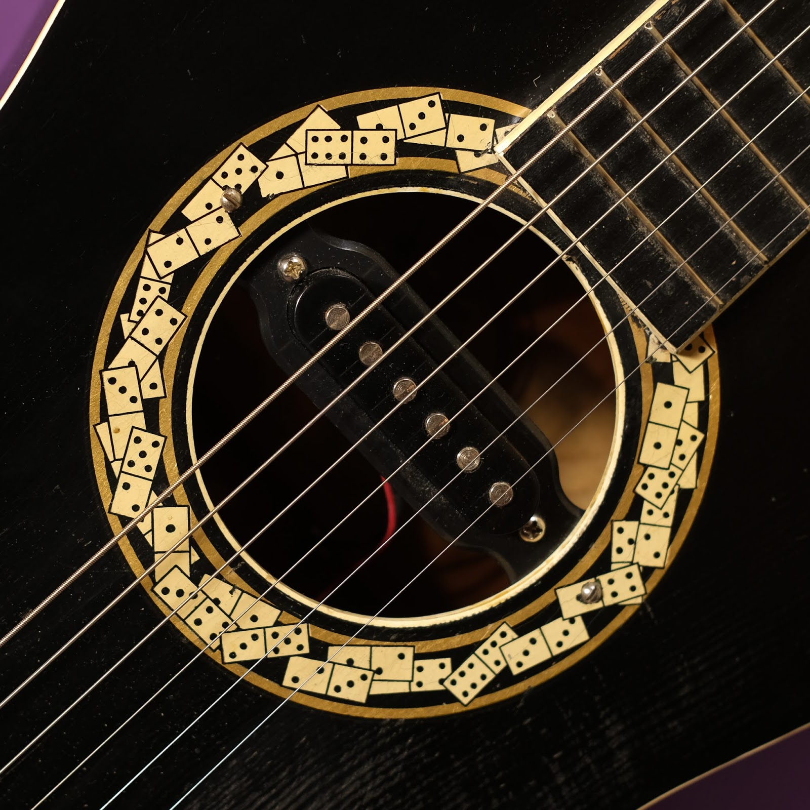 It now plays on-the-dot, has a cool magnetic/electric guitar-style soundhole pickup installed to get your blues on, and has those fantastic dominoes decals!