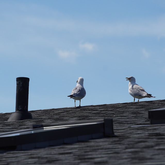 Seagulls occupied me while the kids were finishing-up their day with an after-swim spin on the playground. I like how the fella on the right is all, "yeah, did you hear what Kathy did to Henrik yesterday?"