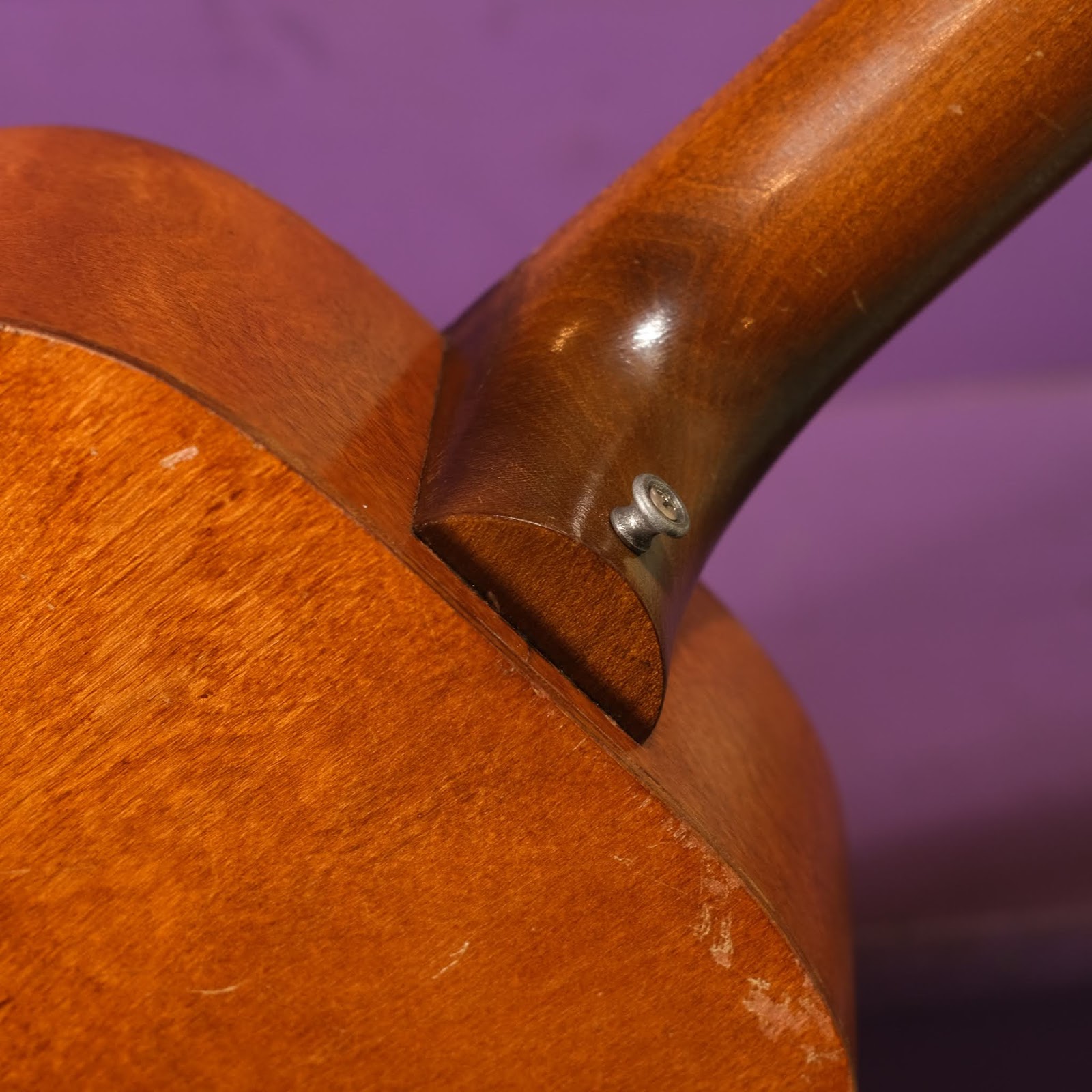 I've worked on probably a dozen of this same, basic, birch-plywood, parlor guitar. These were made by United in New Jersey and come in all sorts of brands and trim styles -- click here for one, here for another, here for yet another, here for one more, and here for a cowboy tenor variant.