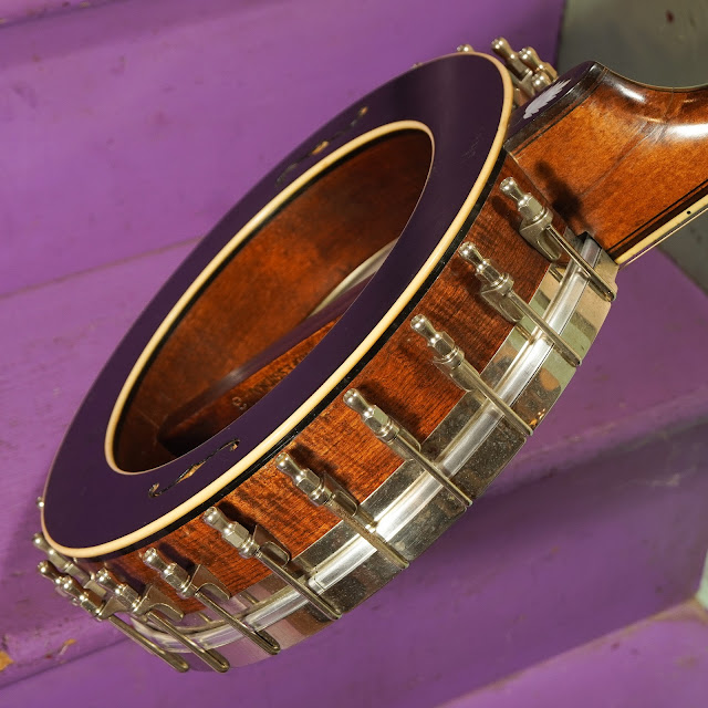 This has a "hoop-in-sleeve" tonering design similar to a Vega Little Wonder tonering, though said ring on this guy is larger in diameter and so a bit more massive. As a result, it sounds sort-of like a Little Wonder instrument but with more volume, sparkle, and pop. It's almost Gibson-sounding, in a way -- you know, that upper-mids, woody "pop" sound? It's a good sound.