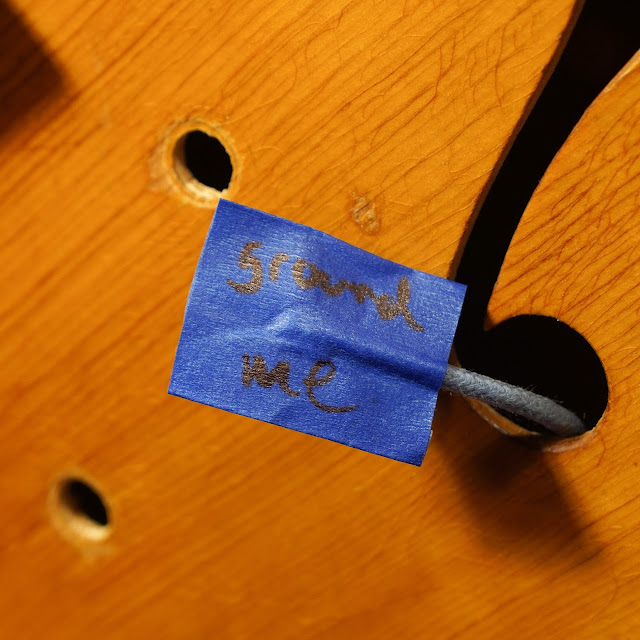 What? An unfinished guitar? Well... so I worked on this for Collar City Guitars and Peter (the owner) found the pickup coil was dead. He yanked the harness and pickup and brought it up here while the DynaSonic pickup was out getting rewound. I'd ordinarily not post something like this, but it's an interesting guitar in that it's all original but has a few quirky features -- including a narrow, factory-cut nut width (which I've seen on another same-period Gretsch from the same year).