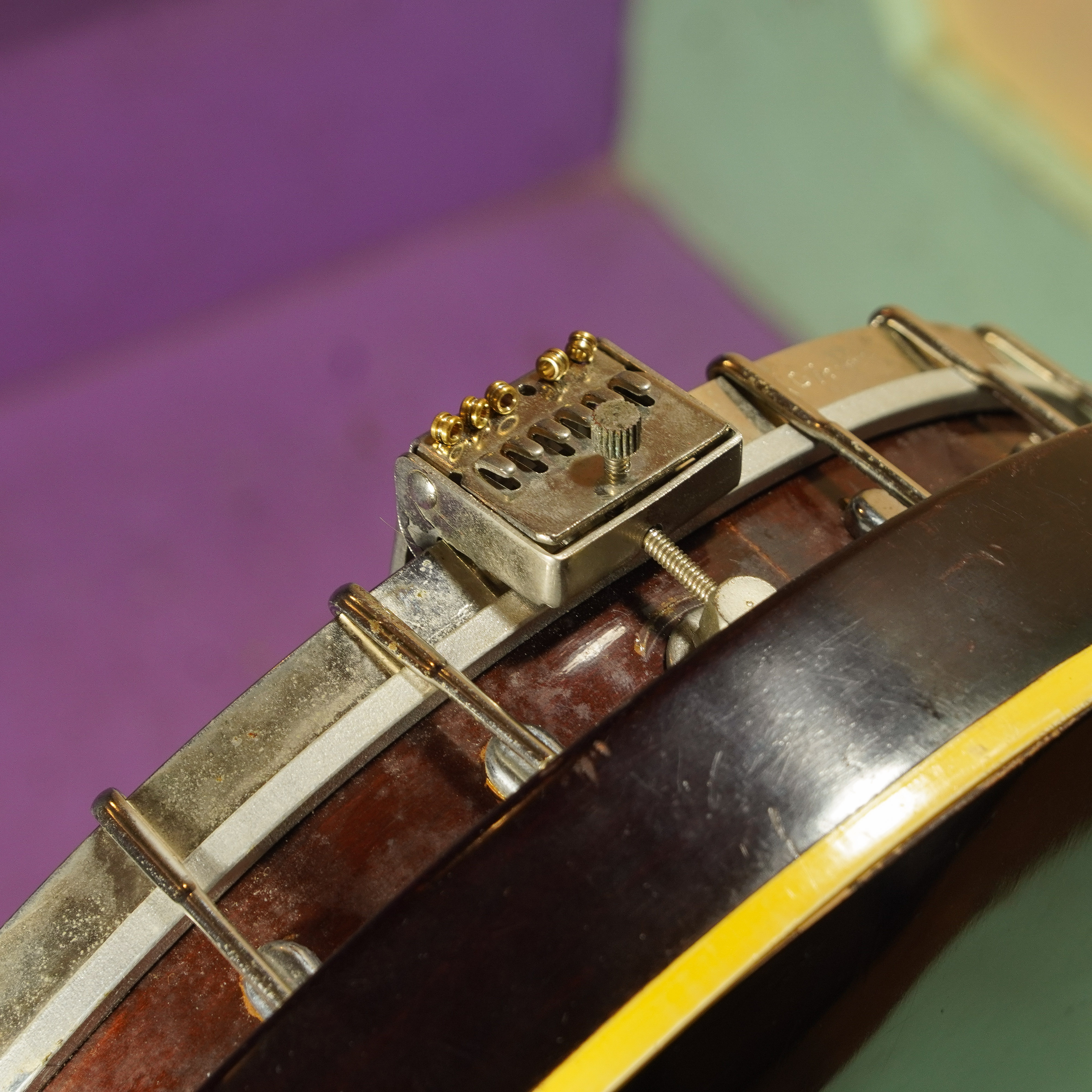 While it looks like a bluegrass banjo, it's more like an "old-time banjo with a resonator slapped-on." It has a woodier, mellower voice despite that resonator but it still has enough volume to sit happily in a jam.