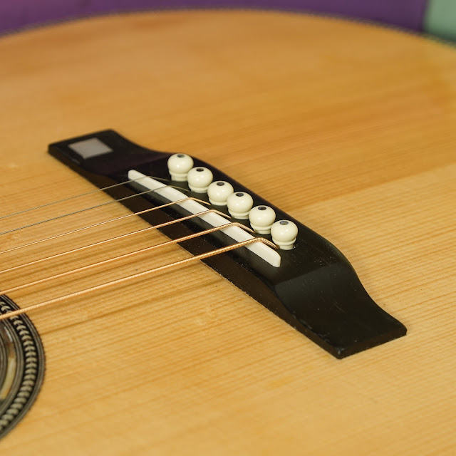 My local friend Dick (in Hancock, VT, just up the street) has now been building instruments for a good, long time and each one gets a variety of small changes and refinements over the last generation of builds. He has been on a guitar-building journey for a while and this 00-size, 14-fret instrument is one he built along with his grandson.