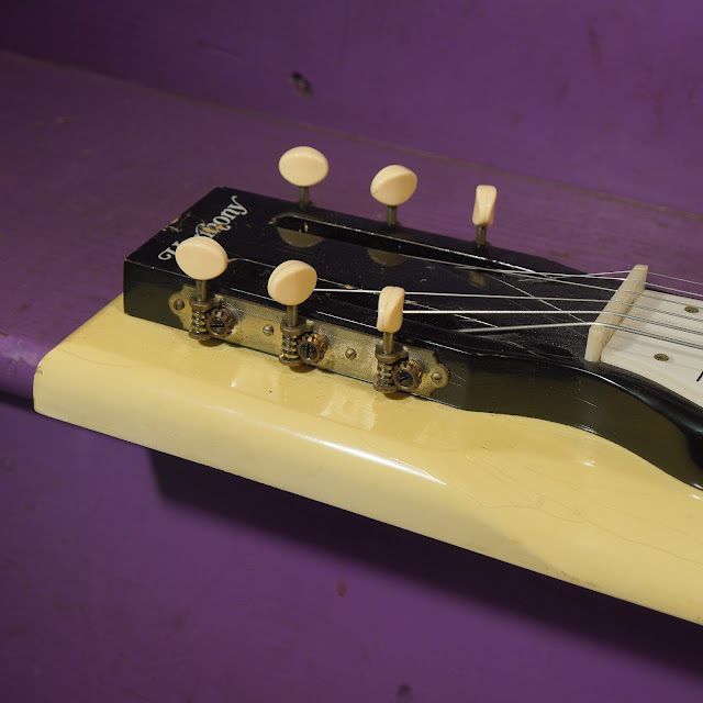 Overview: This latter-era Roy Smeck lap steel looks a lot like the '50s ones (which feature a Gibson P13 pickup) but this version has the thin, DeArmond-made "gold foil" pickup instead. Both are good pickups and while the P13 is a little saucier and fatter, the "gold foil" is actually a bit hotter and more suited to classic lap steel sounds methinks.